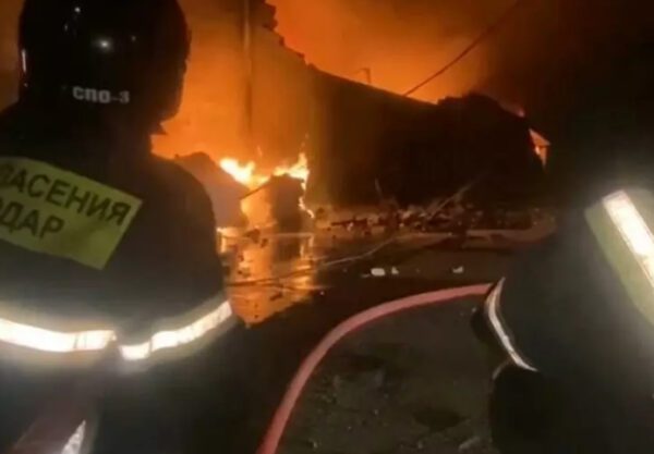 Возгорание произошло сразу в двух ангарах, где хранились материалы для изготовления обуви.