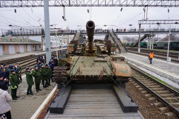 На железнодорожном вокзале «Краснодар-1» 28 февраля прошла передвижная выставка трофейной техники и вооружения из районов боевых действий в Сирии. Корреспондент Свободных Медиа рассказал, что при входе на вокзал образовалась очередь из гражданских и людей в военной форме. Пассажиры были недовольны…
