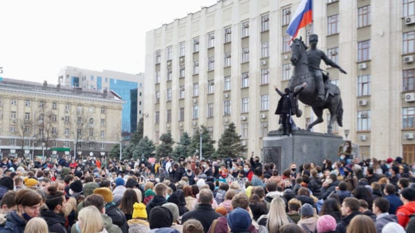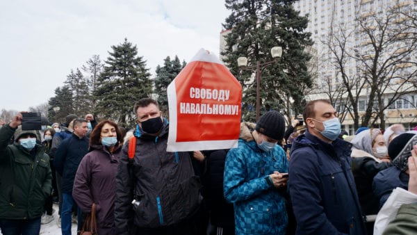31 января в Краснодаре состоялась вторая несогласованная протестная акция в поддержку политика Алексея Навального. Участники собрались на Александровской арке и направились в сторону краевой администрации.