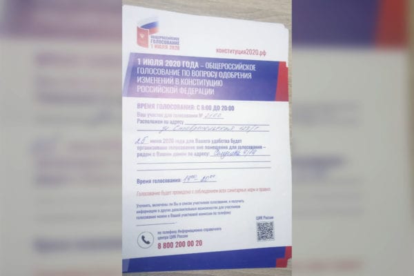 Объявления о голосовании вне помещения раньше объявленного дня голосования по поправкам в Конституцию появляются на дверях жилых домов и в общедомовых чатах.