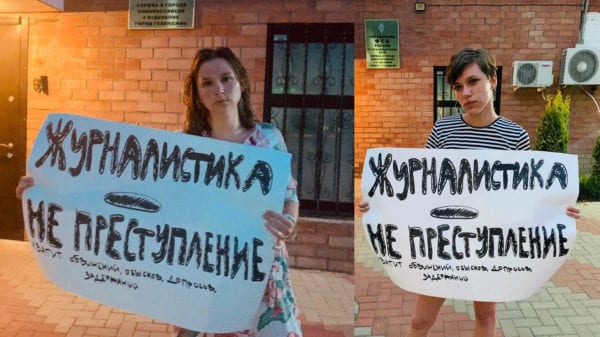 Трое журналисток провели одиночные пикеты напротив здания ФСБ в Геленджике. Об этом Свободным Медиа рассказала одна из участниц, Анна Чернова.