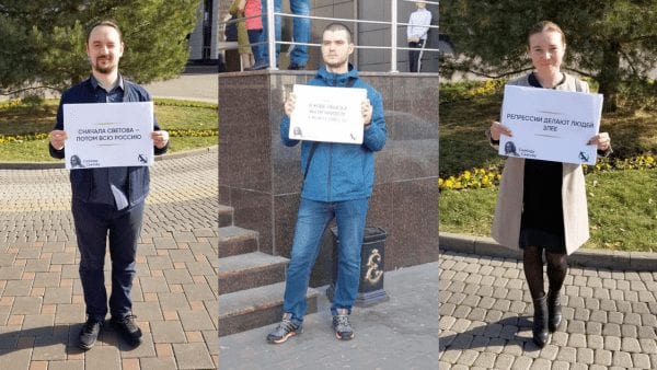 Активисты незарегистрированной Либертарианской партии России (ЛПР) встали с одиночными пикетами у здания Краснодарского краевого суда.