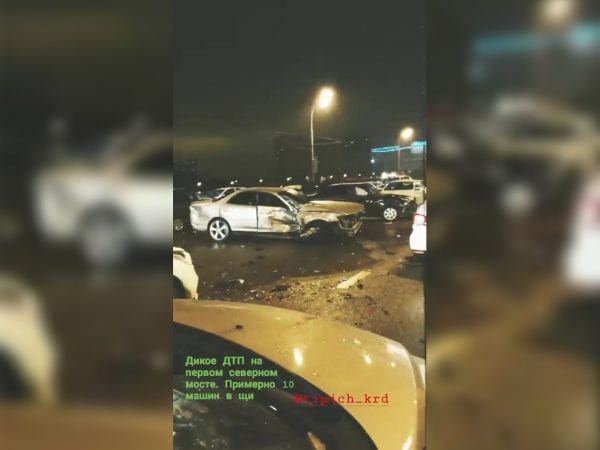 Около 23 часов 23 февраля в Краснодаре на первом Северном мосту произошло массовое ДТП.