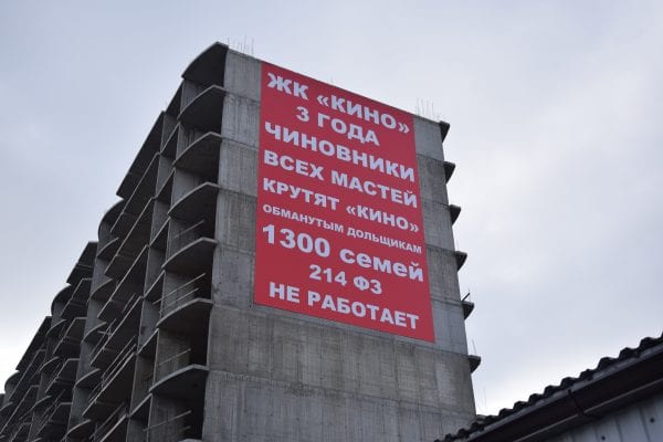 Дольщик ЖК «Кино» Алексей Богушев объявил бессрочную голодовку. Мужчина заранее уведомил об этом краевые и городские власти. Теперь, по словам Богушева, он будет дежурить возле недостроя, чтобы никто не снял баннер, который дольщики вывесили 12 февраля.