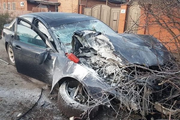 Уже сутки полиция ищет водителя BMW, врезавшегося в дерево и столб на улице Герцена в Краснодаре.