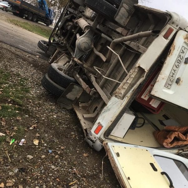 На трассе Темрюк-Краснодар 20 ноября Lada Priora столкнулась с машиной скорой помощи, после чего последняя перевернулась.