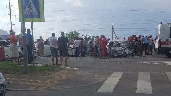 На выезде из Краснодара в сторону ст. Елизаветинской произошло лобовое столкновение двух автомобилей.