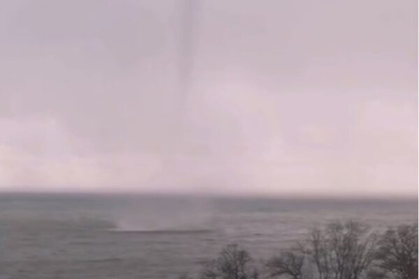 Днём 26 января в Чёрном море в районе посёлка Лермонтово в Туапсинском районе местные жители засняли смерч.