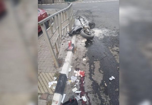 Уточняется, что мотоциклист врезался в пешеходное ограждение.