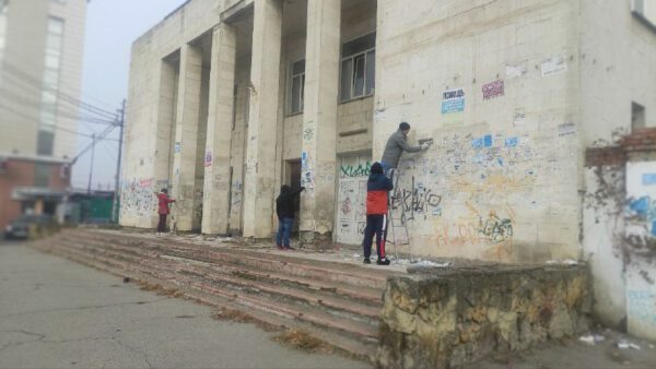 В местных телеграм-каналах посыпалась критика на мэрию Краснодара – прямо на пересечении центральных улиц стоит здание, оклеенное рекламными объявление и разукрашенное граффити.