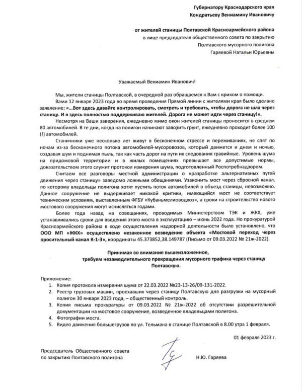 Соответствующее обращение они направили к губернатору Кубани Вениамину Кондратьеву.