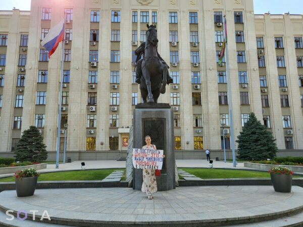 Яна Антонова провела одиночный пикет у администрации Краснодарского края, сообщает телеграм-канал SOTA. Она стояла с плакатом «Не построить школы — это выбор чиновников. Минькову в отставку».