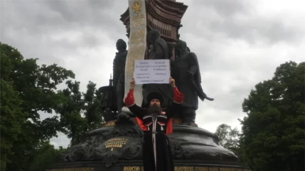 24 мая в центре Краснодара казак Григорий Русин провёл одиночные пикеты, сообщает Кавказ.Реалии (признано в России иностранным агентом).