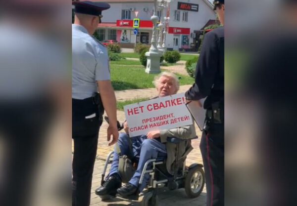 Инвалид-колясочник Юрий Трубачев вышел на пикет против свалки в станице Полтавской, сообщает телеграм-канал «Это «Нам здесь жить!».