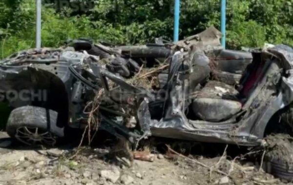 В Сочи вечером 23 июля после сильного ливня из берегов вышла река Мацеста. Бурные воды реки смыли автомобиль, который пытался проехать по мосту.