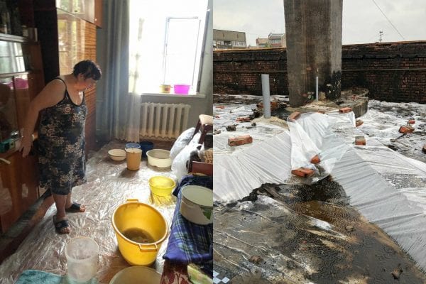 Многоквартирный жилой дом по улице Мира в районе вокзала Краснодар-I затопило дождём. 4 июля на крыше этого же дома произошёл пожар.