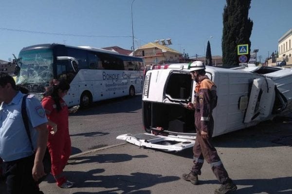 Утром 9 июня в Сочи столкнулись пассажирский автобус «YuTong» туроператора «Вокруг Сочи» и микроавтобус «Mercedes-Benz», в котором проводили обзорную экскурсию. От удара микроавтобус с пассажирами перевернулся.