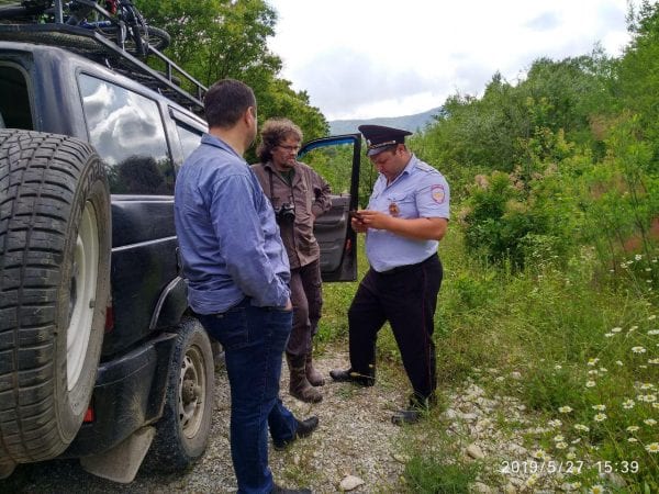 Экологи в своём телеграм-канале сообщают, что во время инспекции они остановились на обед, и через время к ним подъехали полицейские.